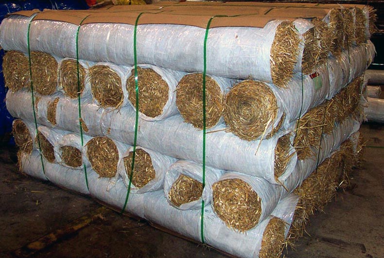 Правильно сформированные и подобранные слои волокон создают благоприятные условия для быстрого прорастания семян. Широко распространено использование соломы в качестве основной прослойки биомата. Её легко купить и она не представляет угрозы для окружающей среды, являясь экологически чистым сырьём.